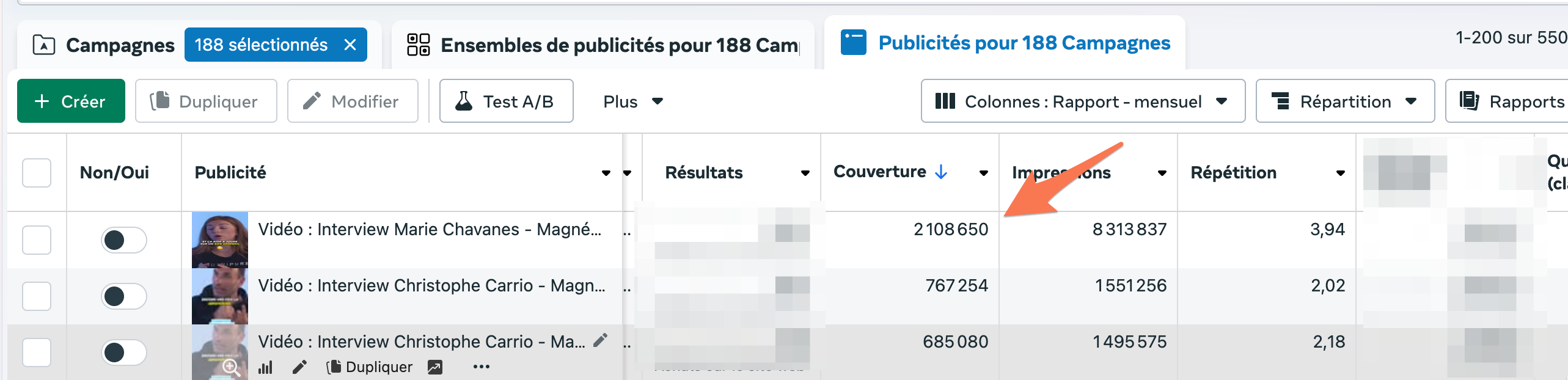 Je ne peux pas afficher le nombre de ventes, ni le CPA … mais le nombre de personnes touchées avec cette publicité vidéo est assez parlant !