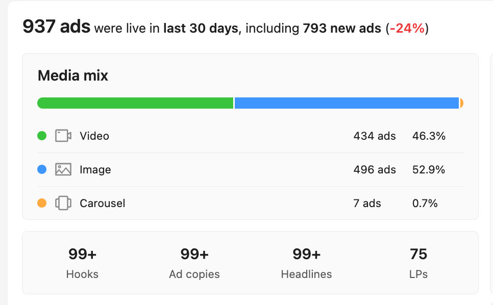 Aussi, dès que vous observez une créa déclinée à de nombreuses reprises (hook, structure, message, …), plus il est probable que cette créa est un best-performer pour la marque !