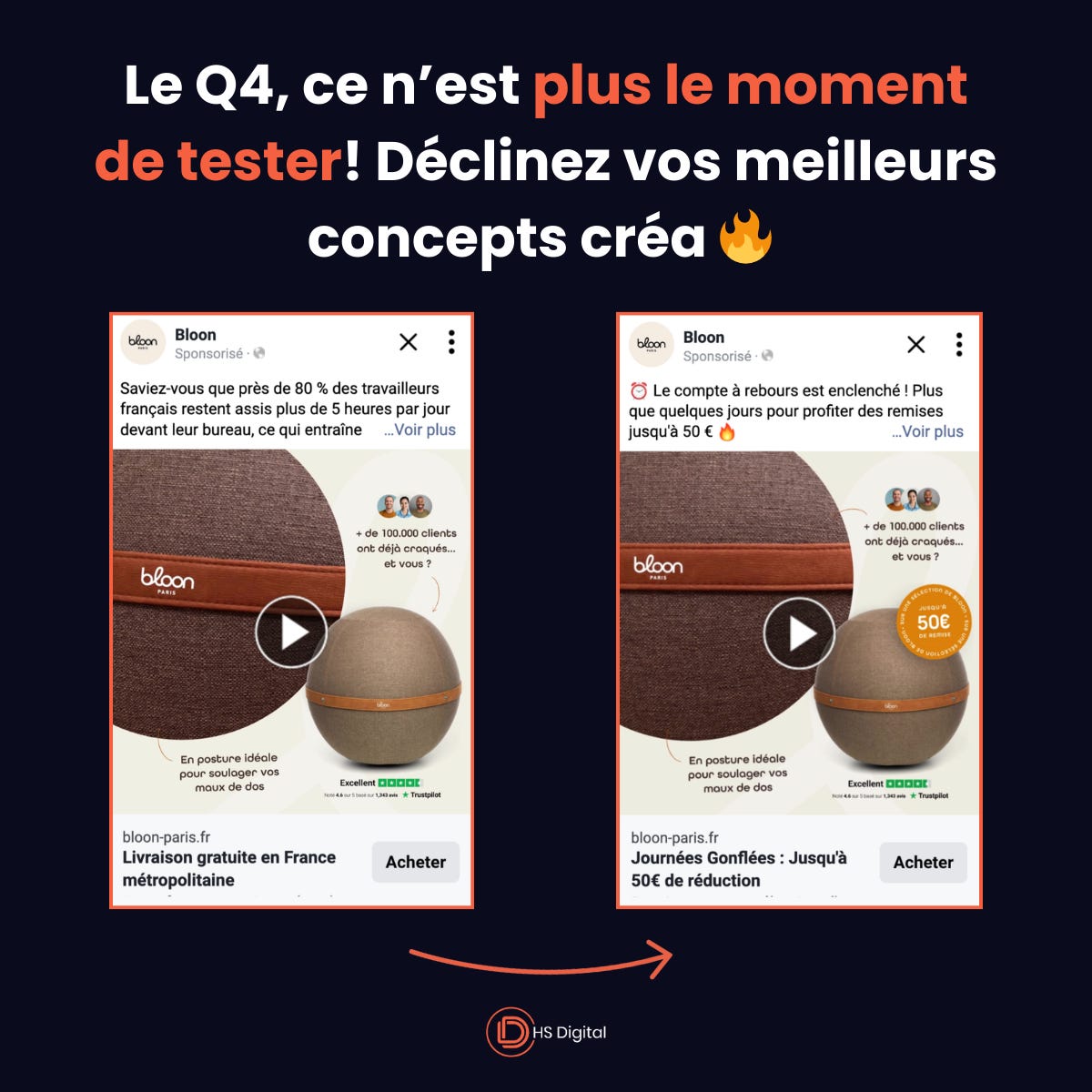 L’année passée, on ne s’est pas pris la tête et on a créé plusieurs publicités qui étaient littéralement des déclinaisons de nos formats best-performer testés en cours d’année.